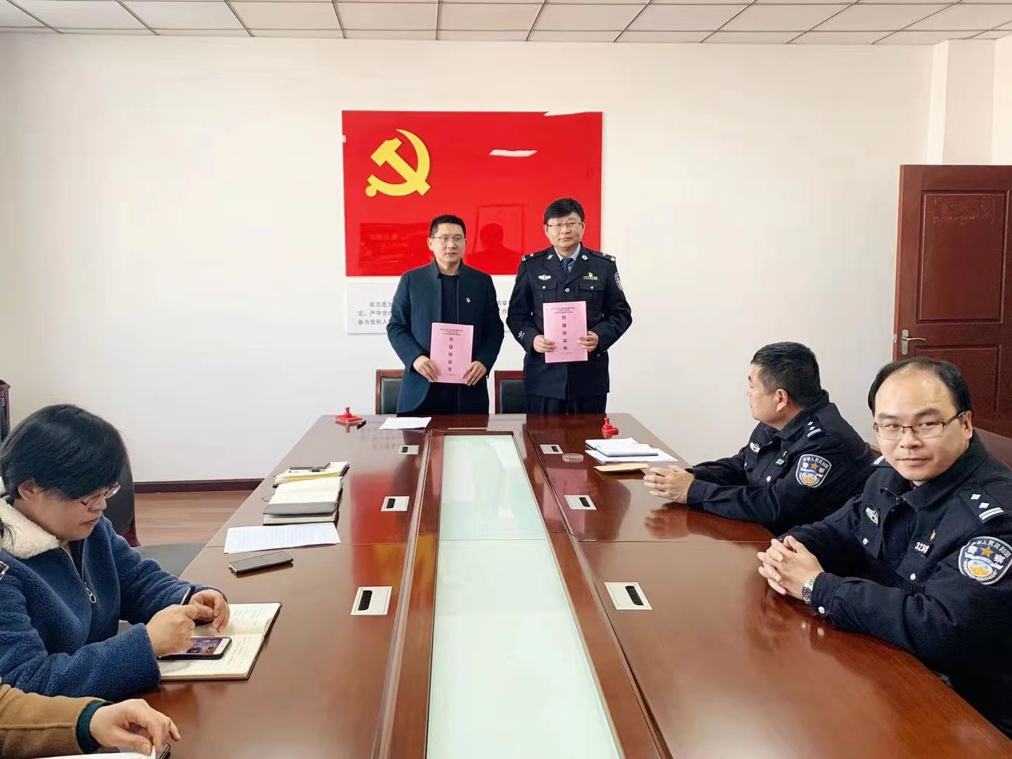 活动伊始,东海县科协党组成员李迎新与戒毒所机关第七党支部书记李大波签订共建协议。随后双方进行座谈,就进一步加强交流共建和开拓党建工作新思路进行了探讨,对彼此的党建资源、组织设置、运行机制作了交流学习。活动期间,参加活动党员面对党旗重温了入党誓词,重温初心和使命,并结合当前全县开展党史学习教育,共同学习了《关于认真学习贯彻习近平总书记在党史学习教育动员大会上的重要讲话的通知》文件精神。