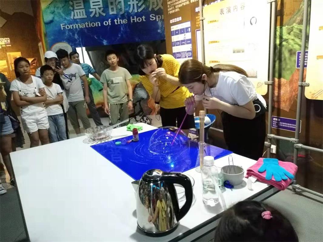 8月24日—8月25日,东海科技馆科学实验表演“泡沫之夏”如期与大家相约。“泡沫之夏”是科技馆工作人员自己创编、自己表演的科学实验,本次实验表演以泡沫为主题,通过用不的材料做出不同的泡泡,将游客感兴趣的科学现象通过表演的形式直观地呈献给大家,是游客们特别是青少年非常喜欢的科普形式。