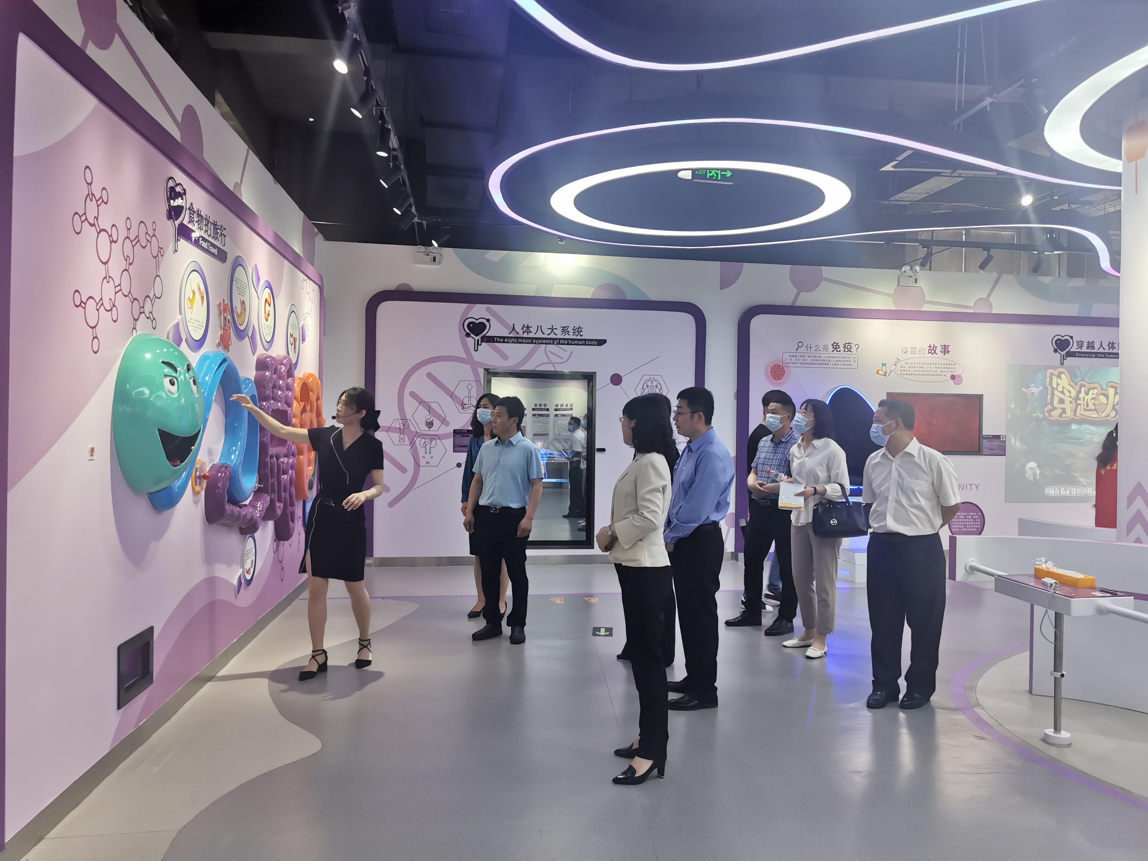 李主席参观了小能人创中心、健康乐园和公共安全展区,还体验了公共安全展区去年新添置的VR展品“火场逃生”,在展厅还通过“核电魔法墙”了解了核电站的工作流程和原理。李主席对2021年公共安全展区的更新改造给予高度评价和肯定,并就科技馆的发展提出了更高要求。
