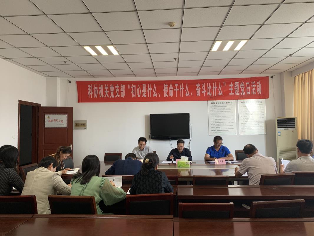 9月20日下午,东海县科协机关党支部开展“初心是什么、使命干什么、奋斗比什么”主题党日活动,机关党支部书记于维春主持会议。