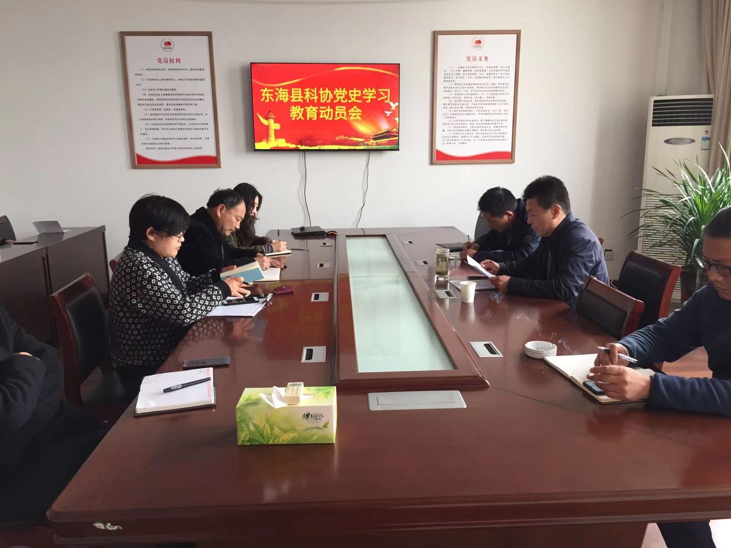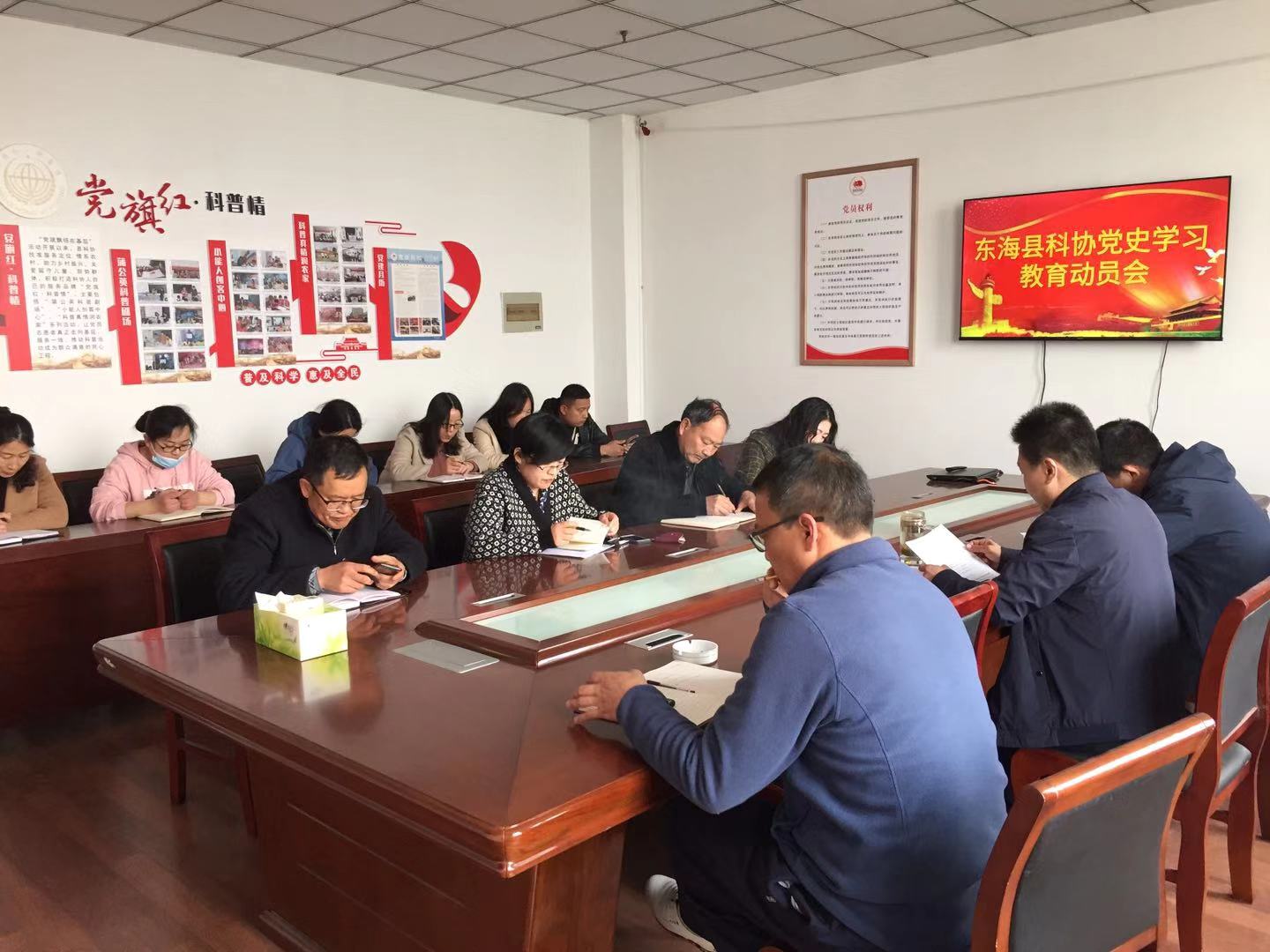 3月29日下午,东海县科协党组召开党史学习教育动员会,深入学习贯彻习近平总书记在全国党史学习教育动员大会上的重要讲话精神,贯彻中央和省、市、县委要求,动员、引导科协广大党员干部做到知史爱党、知史爱国,进一步从历史中寻求经验、探寻规律,凝聚力量、提振信心,牢记初心使命,为东海科协高质量发展提供坚实的信仰力量和奋进的勇气担当。东海县科协党组书记、主席朱荣作动员讲话,对科协党史学习教育全面部署。县科协全体人员参加会议。
