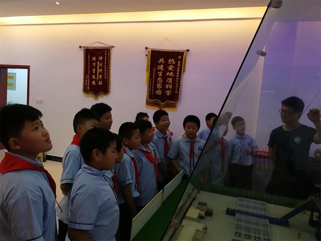 同学们首先参观了科普走廊,专业人员讲述大陆科学钻探的背景、成果;科学家给学生们讲解为什么要进行大陆科学钻探,为什么选址这里,取得的成果和社会效益等内容;同学们参观了大陆科钻陈列室,零距离接触钻井器材;最后结合学生的年龄特点,设计了利用金属探测仪寻宝活动,寓教于乐,通过寻宝活动,了解金属探测寻宝原理,进一步激发同学们对地质科学的兴趣。