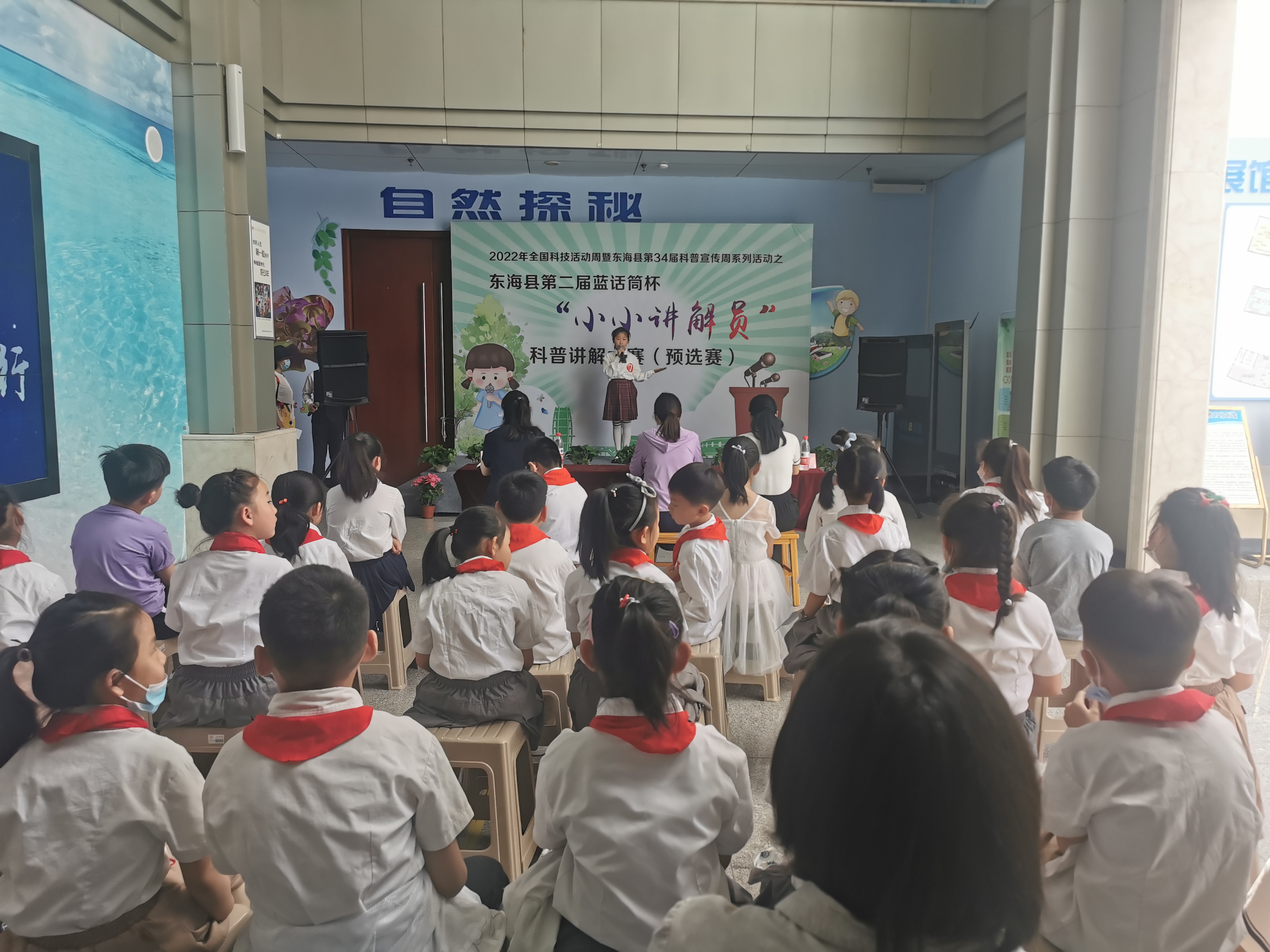 5月22日上午,东海县第二届蓝话筒杯“小小讲解员”科普讲解大赛在2022年全国科技活动周暨东海县第34届科普宣传周启动仪式结束之后拉开序幕。