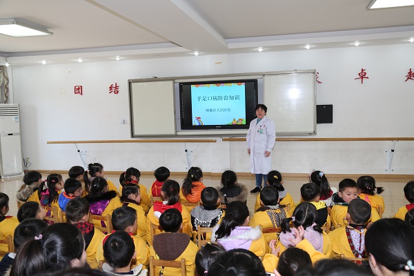 科普志愿者、区人民医院儿科专家薛惠萍为老师和孩子们送上了一堂别开生面的防治手足口病健康教育课。薛主任详细讲解了有关手足口病的症状、传染源、传播途径、预防、治疗措施等内容,又耐心地指导孩子们学习正确的洗手方法。