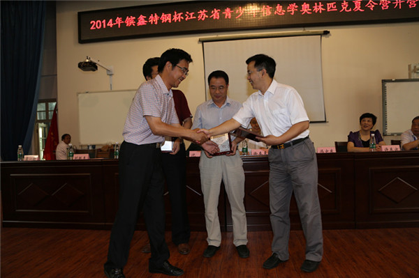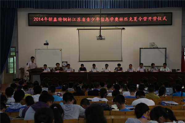 7月5日下午,由江苏省青少年科技中心和省青少年信息学奥林匹克竞赛委员会主办、江苏省赣榆高级中学承办的2014年“镔鑫特钢杯”江苏省青少年信息学奥林匹克(JSOI 2014)夏令营隆重开营,来自全省70多所中学近500名师生参加了这一盛大活动。