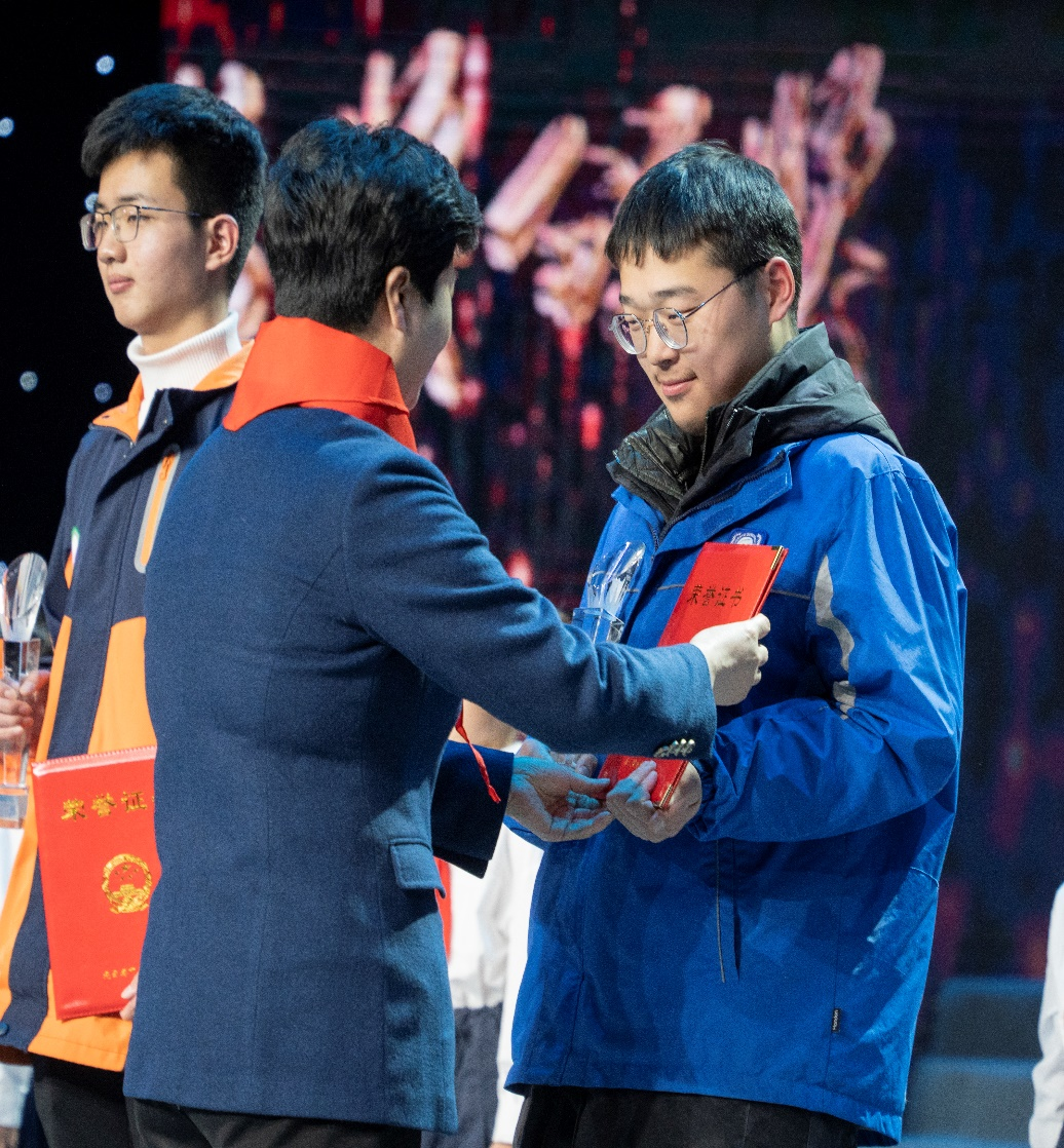 姜思远同学是赣榆区高级中学高二(18)班学生,从小热爱科学,是江苏省中学生科技创新后备人才入选人才,此次凭借《树木液体肥料供养系统的研究》项目顺利入围获得市长奖,成为五名获奖者之一,在连云港市少儿春晚舞台上接受市长颁奖。