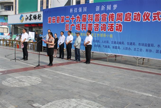 5月20日上午,灌云县第29届科普宣传周启动仪式在灌云县富源广场举行。灌云县县委常委、宣传部部长马兆素,县政协副主席周建军,县科协主席杜守旭及县委宣传部、县卫计委、县教育局等联办单位相关领导出席活动。马兆素在开幕式上讲话并宣布科普周启动,周建军主持开幕式。