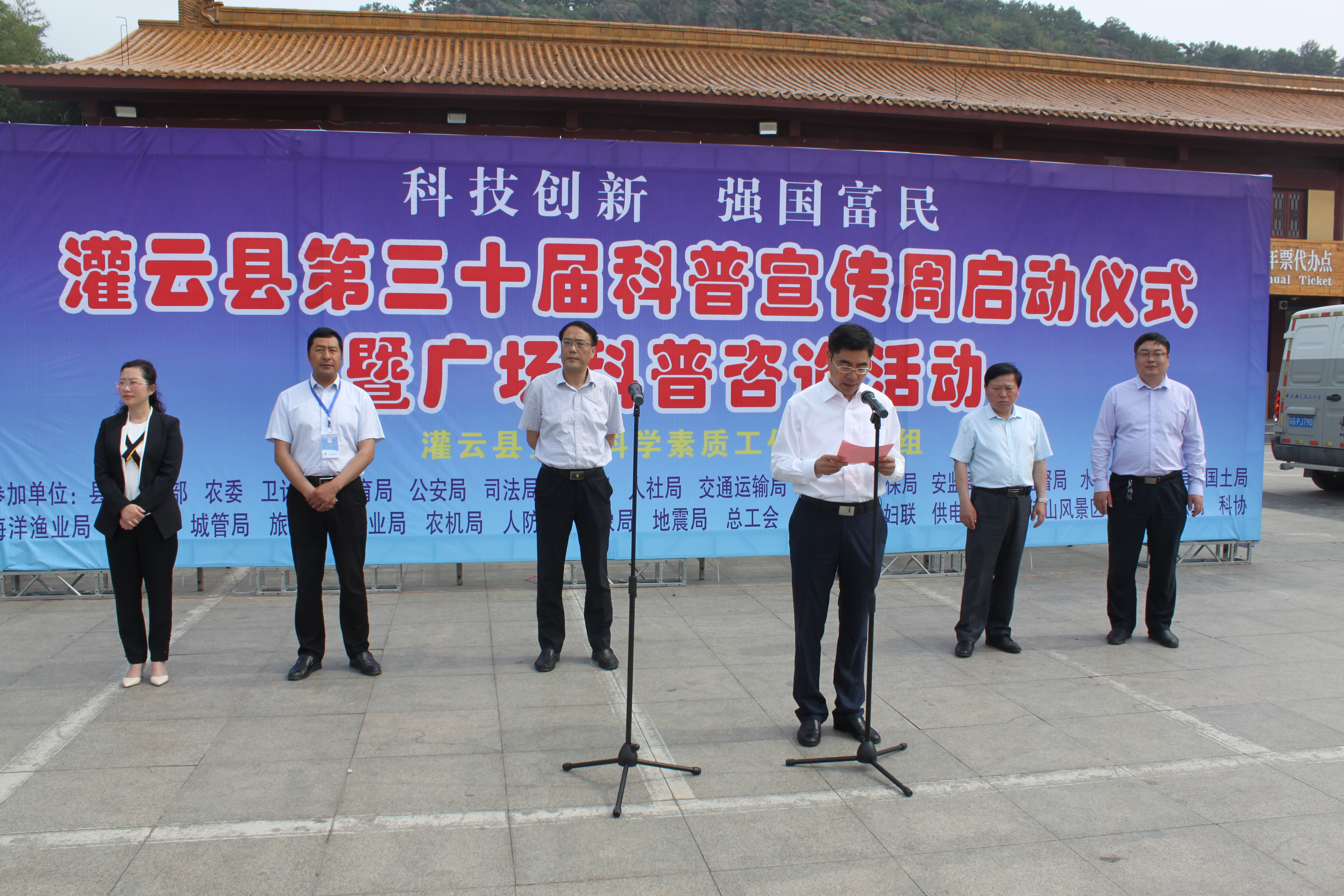 5月18日,灌云县第三十届科普宣传周启动仪式暨广场科普咨询活动在伊山石佛寺南门广场举行,灌云县县委副书记伏开清,县政协副主席周建军,县科协主席杜守旭及县委宣传部、县卫计委、团县委等联办单位相关领导出席活动。县委副书记伏开清在开幕式上讲话并宣布科普周启动,县政协副主席周建军主持开幕式。
