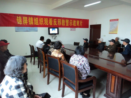 5月17日,锦屏镇组织各村(居)书记、主任及科普志愿者50余人在锦屏镇反邪教警示教育室观看反邪教警示教育片,倡导“崇尚科学,反对邪教”的良好社会风尚。