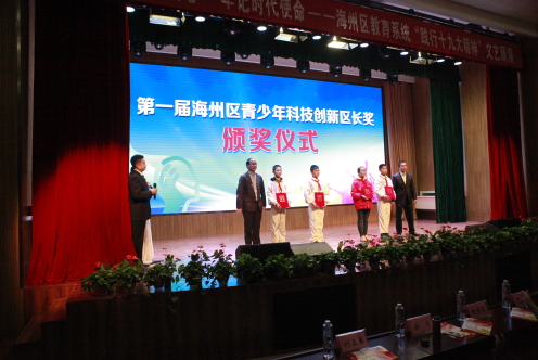 10月31日,连云港市海州区举办首届青少年科技创新区长奖颁奖仪式。区人大常委会副主任张华陆、区政府副区长于卉、区政协副主席王兰芳,区科协、教育局等有关部门领导,全区各中小学校校长和科技教育辅导老师及获奖代表等参加仪式。