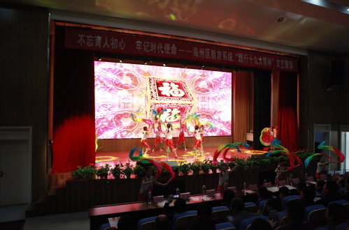 颁奖仪式上,区领导张华陆、于卉、王兰芳为获奖者颁奖,并与全区学校代表共同观看了海州区教育系统“践行十九大精神”文艺展演。