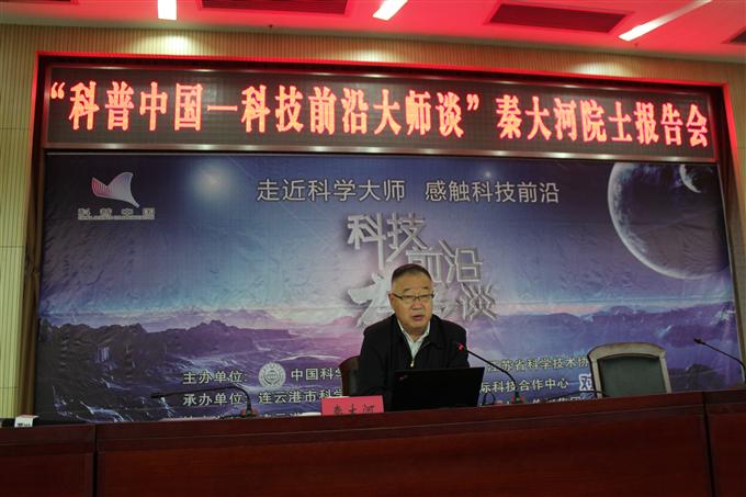 为提高公众对前沿科技及公众生产生活密切相关领域的认知和了解, 12月15日上午,连云港市隆重举行“科普中国——科技前沿大师谈”秦大河院士报告会。中国科协副主席、中国科学院院士秦大河作《气候变化科学与可持续发展》专题报告,市委常委、政法委书记王加培出席并主持报告会。连云港市级科协及各县区科协、市级学会、协会会员,部分驻连官兵,气象系统及相关行业科技工作者,淮海工学院师生代表等350余人参加报告会。