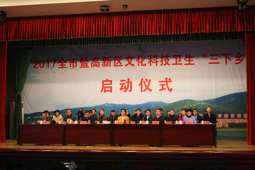 1月17日,连云港市文化科技卫生“三下乡”集中活动在连云港国家高新区花果山街道启动。市委常委、宣传部长滕雯、副市长董春科及市直各单位相关负责人出席活动。