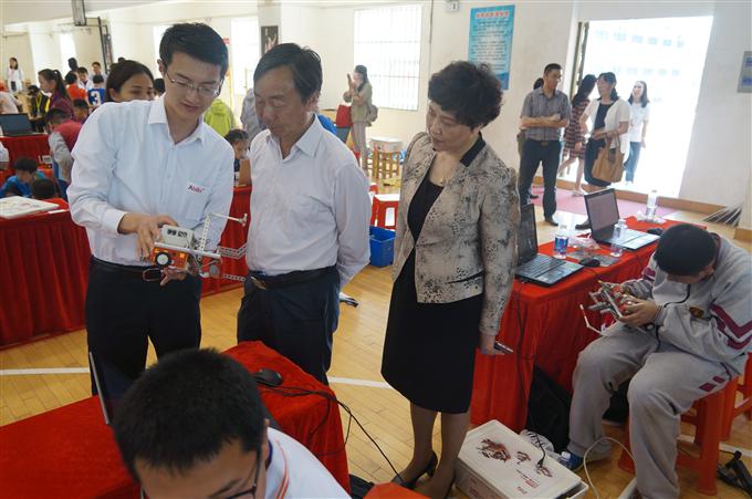 为配合连云港市第二十九届科普宣传周活动,5月19日上午,首届连云港市教育机器人(WER)选拔赛在苍梧小学体育馆隆重开幕,市科协党组书记、主席许东方,市教育局副局长高健,市科协副主席褚士明,苍梧小学校长戴咏芳,世界教育机器人组委会副秘书长沈爱龙出席活动。许东方宣布大赛开幕,高健在开幕式上讲话,大赛裁判长黄业举主持开幕式。本次竞赛有来自全市中小学校80多支队伍100余名选手参加。