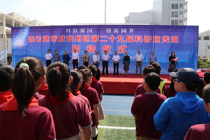 5月19日上午,连云港市暨海州区第二十九届科普宣传周启动仪式在苍梧小学举行。市人大常委会副主任董春科,市政协副主席徐大勇,市科协党组书记、主席许东方及市委宣传部、市科技局、市教育局等联办单位相关领导出席活动。董春科宣布科普周启动,徐大勇在开幕式上讲话,市科协副主席褚士明主持开幕式。