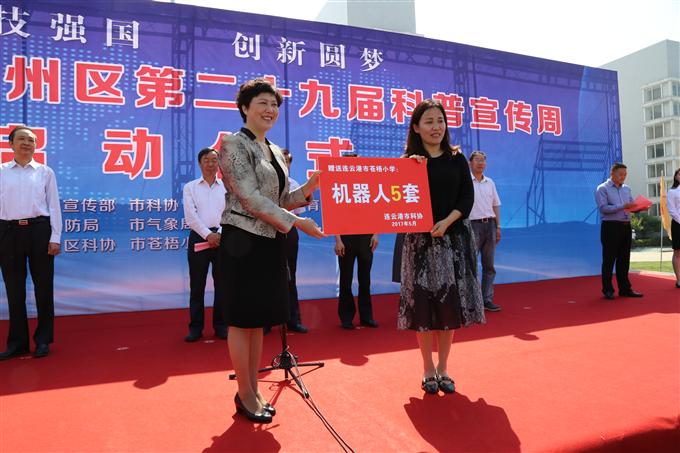 启动仪式上,市科协向苍梧小学赠送了教学机器人。随后,出席开幕式的各位领导与学校师生、群众一起参加了现场科普活动,观看了科普展板、高科技产品展示及连云港市首届世界教育机器人选拔赛,参加了科普咨询等活动,并与科普志愿者和科技工作者进行了互动。