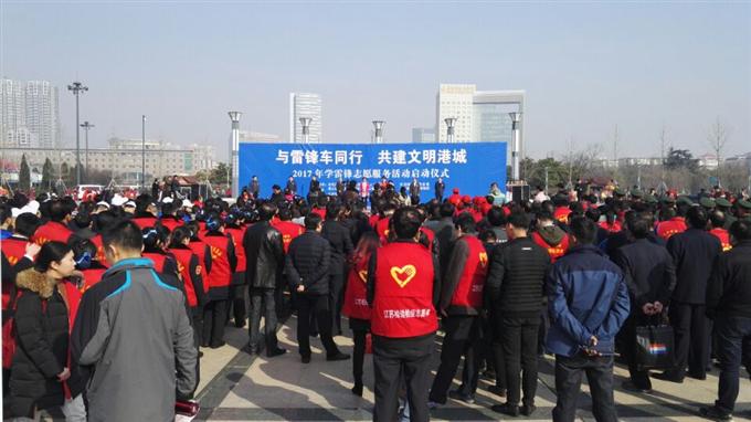 3月4日上午,连云港市“与雷锋车同行、共建文明港城”学雷锋志愿服务活动启动仪式在市苍梧绿园举行。市领导滕雯、于丽华、黄远征、方韬出席启动仪式,市内有关单位领导、功能区党群部分分管领导、各县区文明办主任等单位以及志愿服务组织代表万余人参加了启动仪式。
