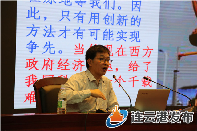 【连云港发布】5月25日上午,由市委组织部、市科协主办的“全国科技工作者日”高端报告会暨连云港名家讲坛在淮海工学院举行,我国“蛟龙”号载人潜水器总体与集成项目负责人、第一副总设计师崔维成应邀做报告,副市长王开宇出席。