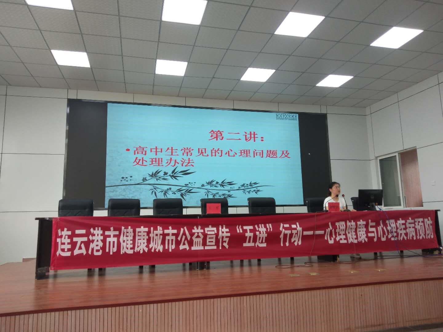 6月19日,市心理学会、市民心理健康学校和连云港市板浦高级中学联合开展了“连云港市健康城市公益宣传行动”,连云港市第四人民医院心身医学科医师金峻宇为该校高二年级二百余名学生做了题为“心理健康 为成功护航”的心理健康讲座。本次活动是连云港市心理学会、市民心理健康学校和市四院开展的健康城市公益宣传“五进”行动之一。