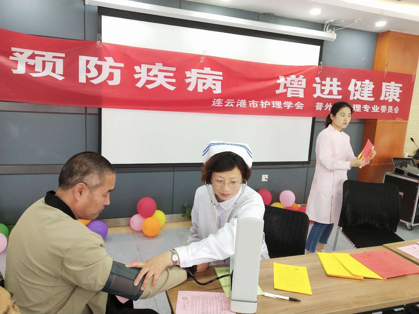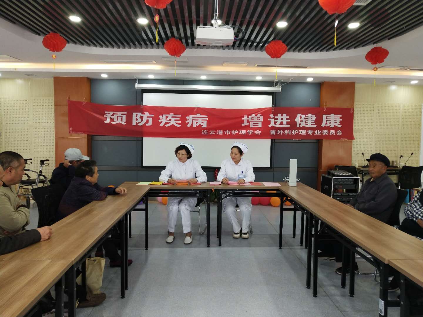 值5.12护士节来临之际,为响应连云港市护理学会2019年“5.12”国际护士节期间开展科普周活动,5月6日市护理学会普外科副主委李荣和委员孙婧来到赣榆区护理院,对各位老人进行测量血压、慢性病宣教活动。发放高血压病健康教育处方、糖尿病健康教育处方、冠心病健康教育处方、髋关节置换术后健康教育处方、流行性感冒健康教育处方、急性结膜炎健康教育处方等共400张健康教处方。