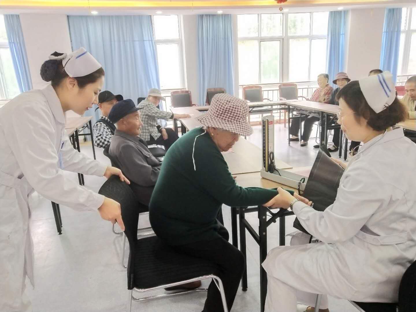 我们为每一位老人测量了血压,并告知老人要调节饮食,放松心情,保持标准体重,合理用药,突发血压升高、或出现呕吐、剧烈头痛时立即卧床,及时用药。