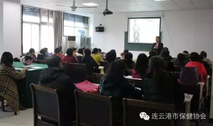 11月16日上午,由连云港市好苏嫂学校主办的保健按摩师公益培训开班授课,特邀市保健协会健康管理促进专委会副秘书长、中国五行文化研究院高级研究员、中国辐射防护研究院保健师、高级健康管理师陈厚安作“中国公民中医素养”开班培训课程。