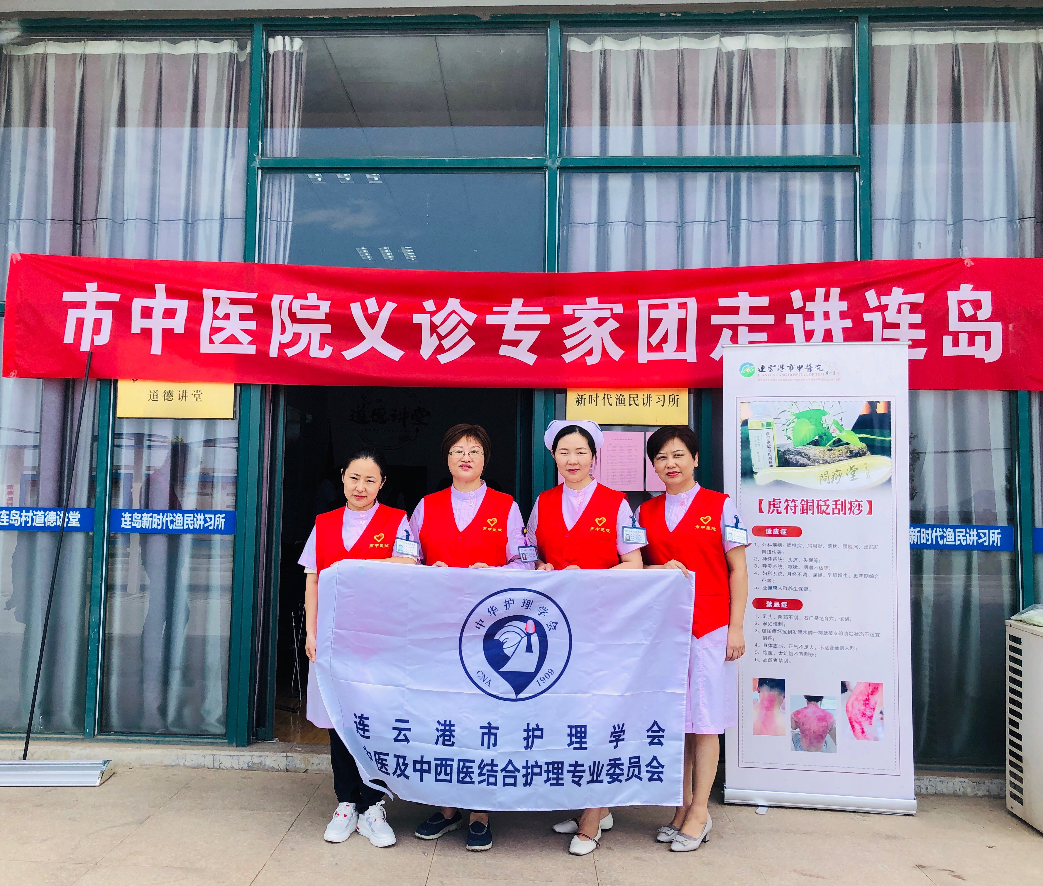 7月10日上午,在全国倡议开展护理延伸服务的号召下,连云港市护理学会中医、中西医结合护理专业委员会委员们,来到市连岛社区进行回报父老、送医进乡村义诊活动,让中医护理延伸服务走进居民身边。
