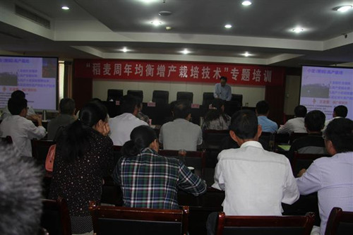 秋播在即,为提高我市的稻麦周年种植水平,市农学会于近日在桃园宾馆举办稻麦周年高产栽培技术培训班,邀请省农委、省农科院有关专家前来授课,市农学会理事长、市农委副主任李筠主持。市农委有关处(站、中心)的全体人员,各县区农委(农水局)农技人员、农技骨干、种粮大户等230余人参加了培训