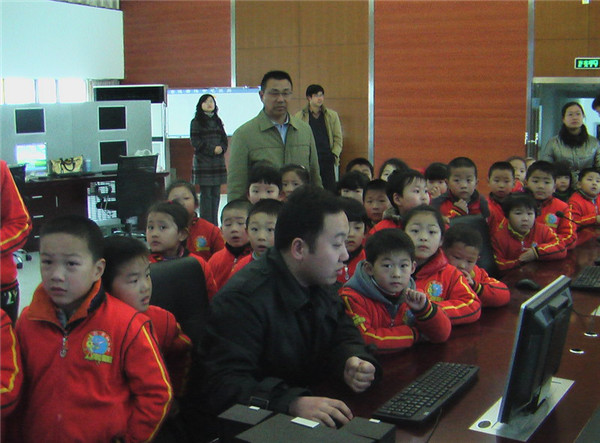 世界气象日”。图为商业幼儿园师生到市气象防灾减灾指挥中心参观,气象科技人员正在向师生们介绍气象知识。