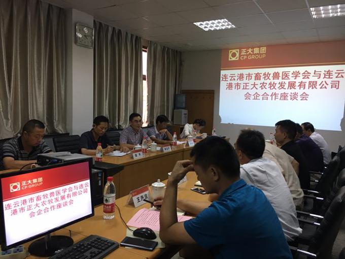 近日,连云港市畜牧兽医学会单玉平理事长带领学会部分科技人员到连云港正大农牧发展有限公司开展科技服务到企业活动。连云港正大农牧发展有限公司畜禽产业化尚洪波总经理、正大集团(中国区)饲料技术职能线(江、浙区)畜禽服务技术总监周庆雨等陪同。