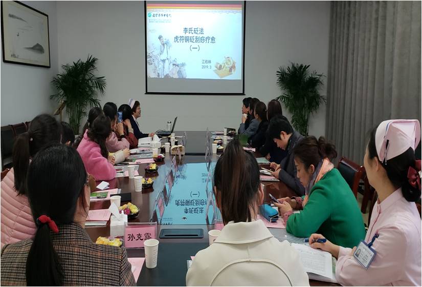本次会议上江主委还进行了《李氏虎符铜砭刮痧疗愈》的分享,委员们在江主委热情洋溢的讲解中,深深迷上了铜砭刮痧,并到市中医院刮痧门诊进行铜砭刮痧体验,进行互刮。本专委会今后将多组织此类活动,让大家相互之间多交流学习,在全市范围内多展示一些中医护理特色技术,共同促进我市中医护理工作的发展!