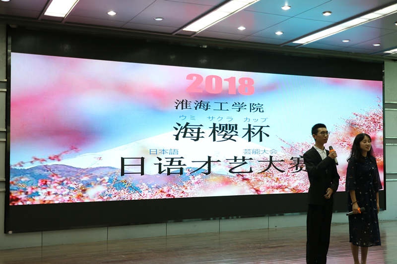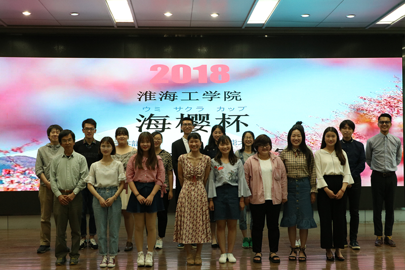5月13日下午2时,在本部艺术报告厅举行了由连云港市翻译工作者协会和淮海工学院共同主办的海樱杯日语才艺大赛,林田诚二、佐藤大士、野村香太郎和竹山胜己四位外教老师作为评委出席了本次比赛,日语系全体同学和对日语感兴趣的同学到场观看了比赛。