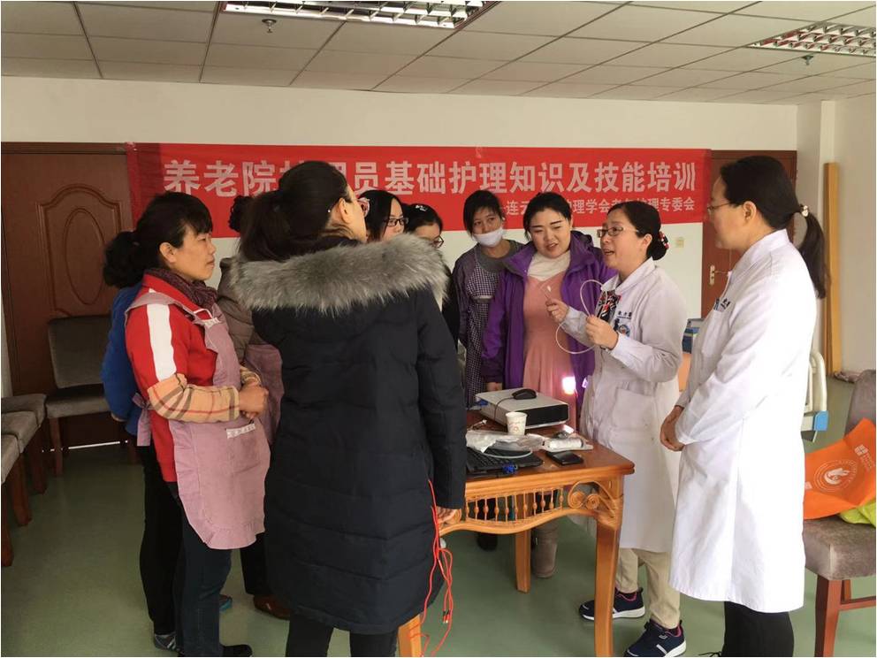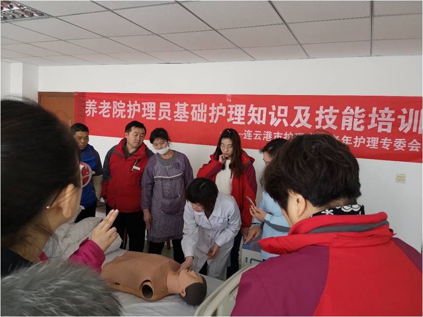 为提升连云区社会福利中心养老护理人员的基础护理知识及急救能力,3月12日,连云港市老年护理专委会主任委员、连云港市东方医院护理部张海云主任带领老年专委会委员及护理专家应邀走进连云区社会福利中心,去为那里的养老护理员及工作人员进行专业的心肺复苏及鼻饲护理等操作的培训指导,给老人们带来健康保障。