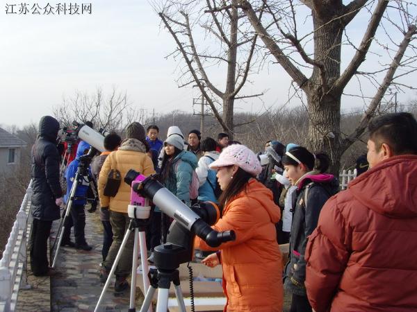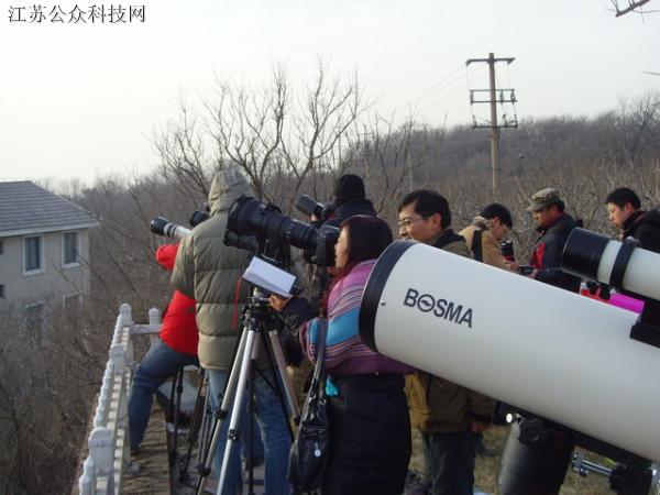图为来自江苏各地媒体和天文爱好者正在观看这一天文奇观