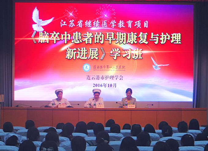 由连云港市护理学会主办、市一院神经内科承办的省级继续教育项目“脑卒中患者的早期康复与护理新进展”,于10月14日在连云港市第一人民医院院举行,来自全省多个医院的护理同仁参加了学习班,徐州医科大学附属医院护理部张梅主任、南京军区总医院神经内科刘亚红护士长等多名知名专家前来授课。