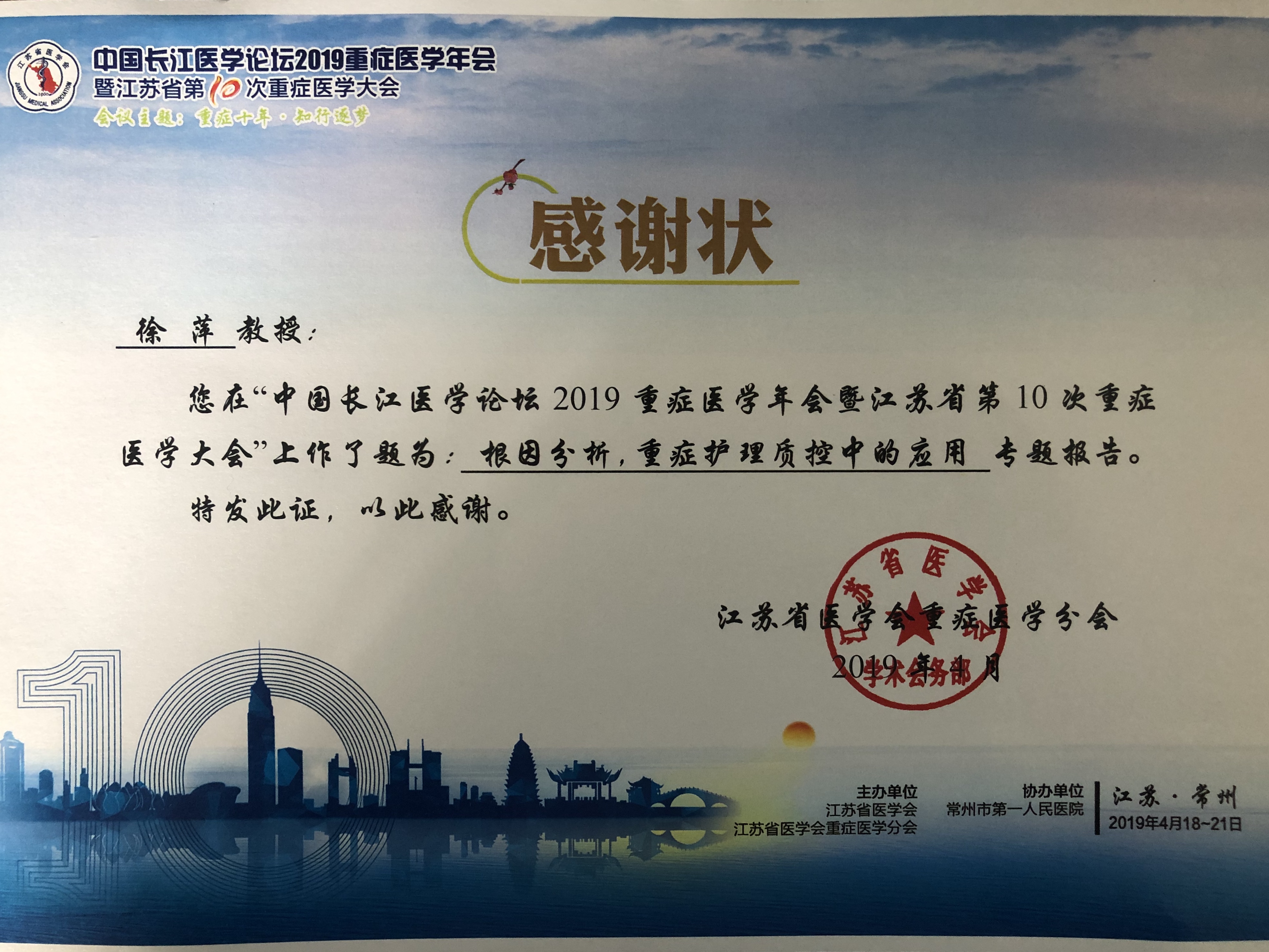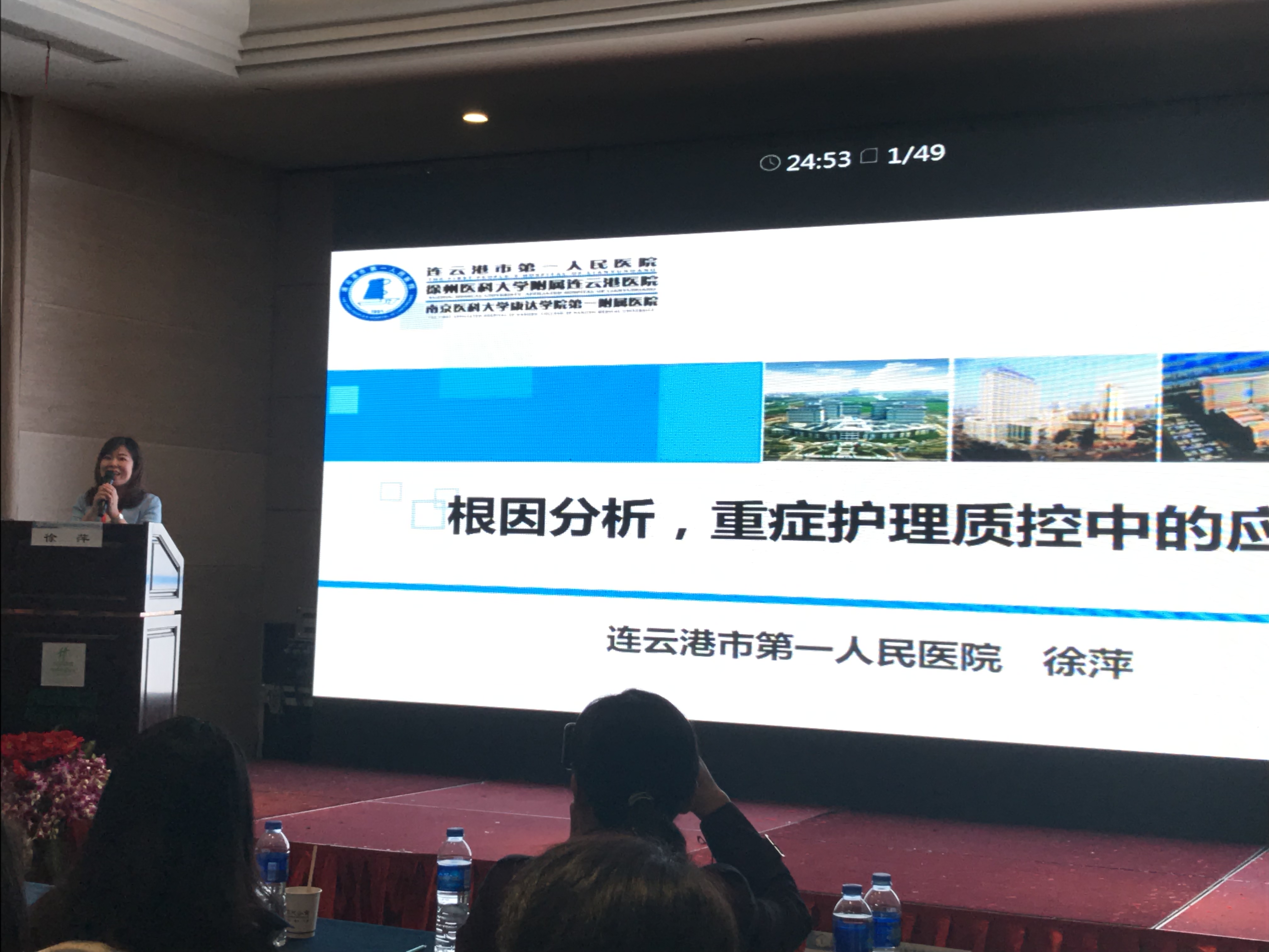 徐萍作为江苏省护理学会危重症专业委员会的委员和连云港市护理学会危重症专业委员会的主任委员应大会邀请做《根因分析,重症护理质控中的应用》专题讲座,在会上徐萍老师针对根因分析并给予深入的讲解,并结合重症临床实际案例进行详细阐述。现场氛围浓厚,反响强烈,受到与会专家及在场人员的一致好评。