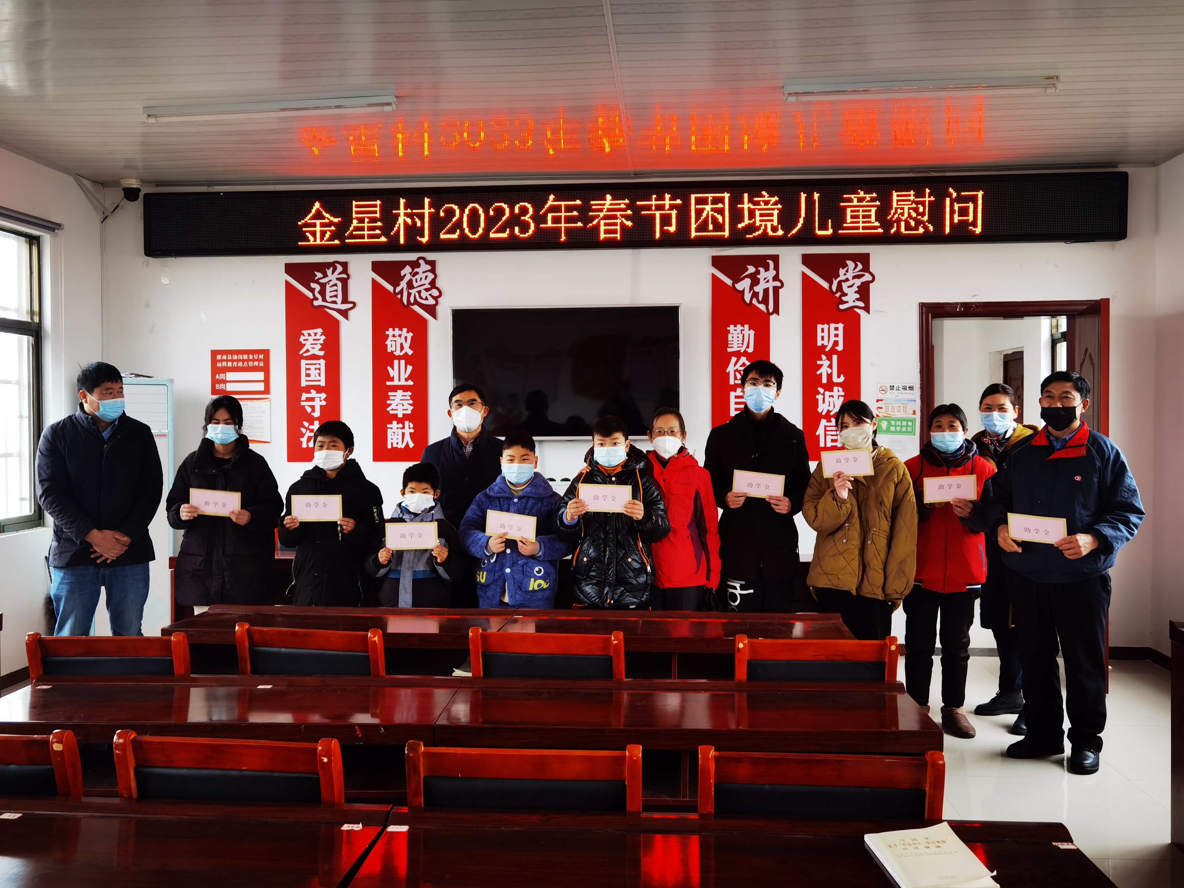 本次送年货、送助学金、送祝福、送温暖“新春慰问助学”活动,一是了解金星村困难学生和留守儿童家庭状况、生活学习等情况,鼓励他们乐观面对生活中遇到的困难,不气馁、不自卑,激励他们努力学习,不断成长成才,坚定信心、努力奋斗,用知识改变命运,并向10名困难学生赠送了助学金,受资助的贫困学生纷纷表示会努力学习,以优异成绩回报家人和社会的关爱。二是走访慰问了村中5名困难党员群众,致以新春问候与美好祝愿,鼓励他们积极、乐观的应对生活中出现的困难,并赠送春联、面和油等年货,传递党和政府的关怀与温暖。
