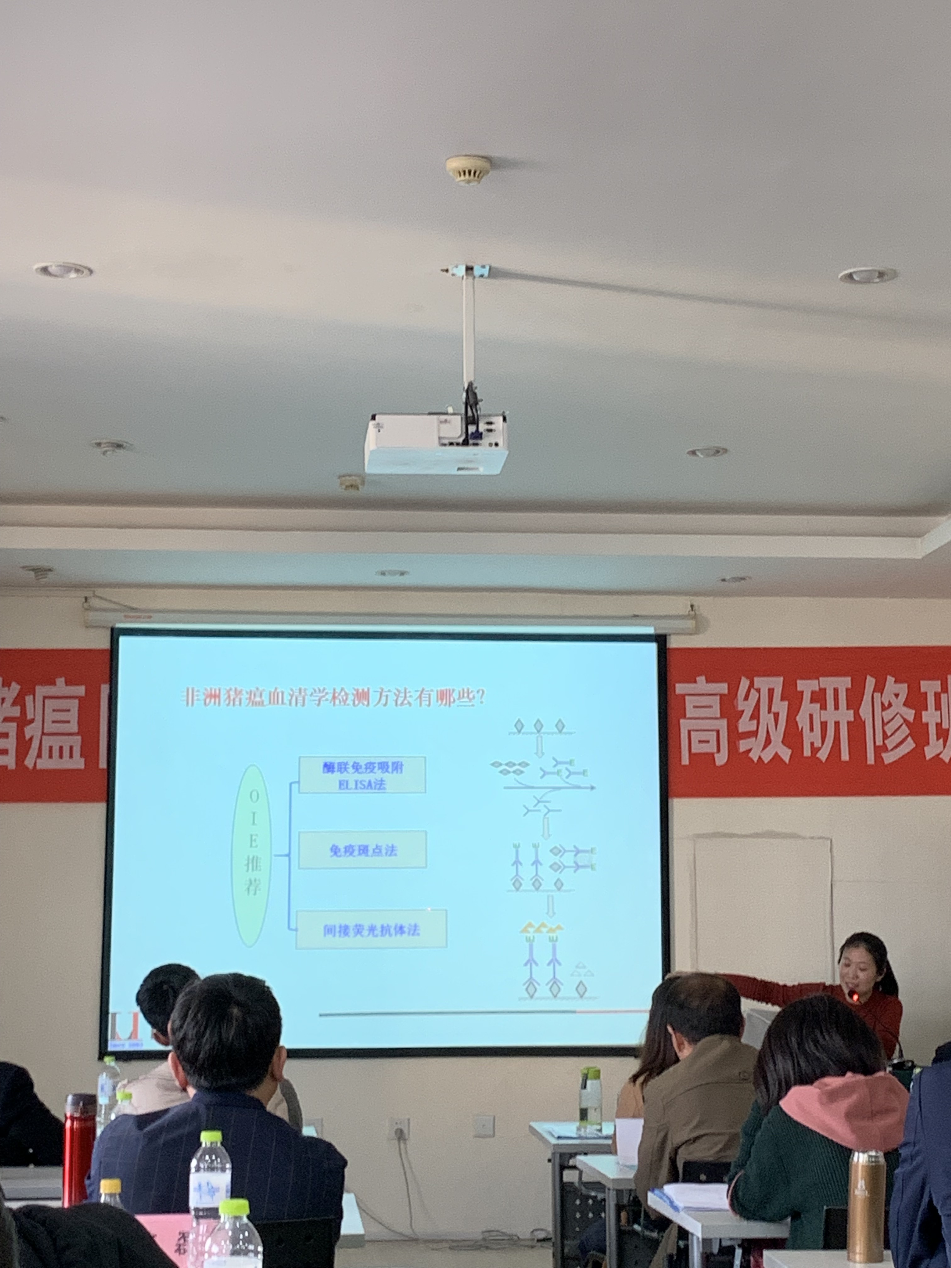 国家外来动物疫病研究中心吴晓东对《非洲猪瘟防控形势及政策》进行了详细的解读;中国动物卫生与流行病学中心张志博士和王楷宬博士分别对《非洲猪瘟荧光PCR快速检测技术》和《非洲猪瘟实验室检测方法及研究进展》进行了详细的说明。