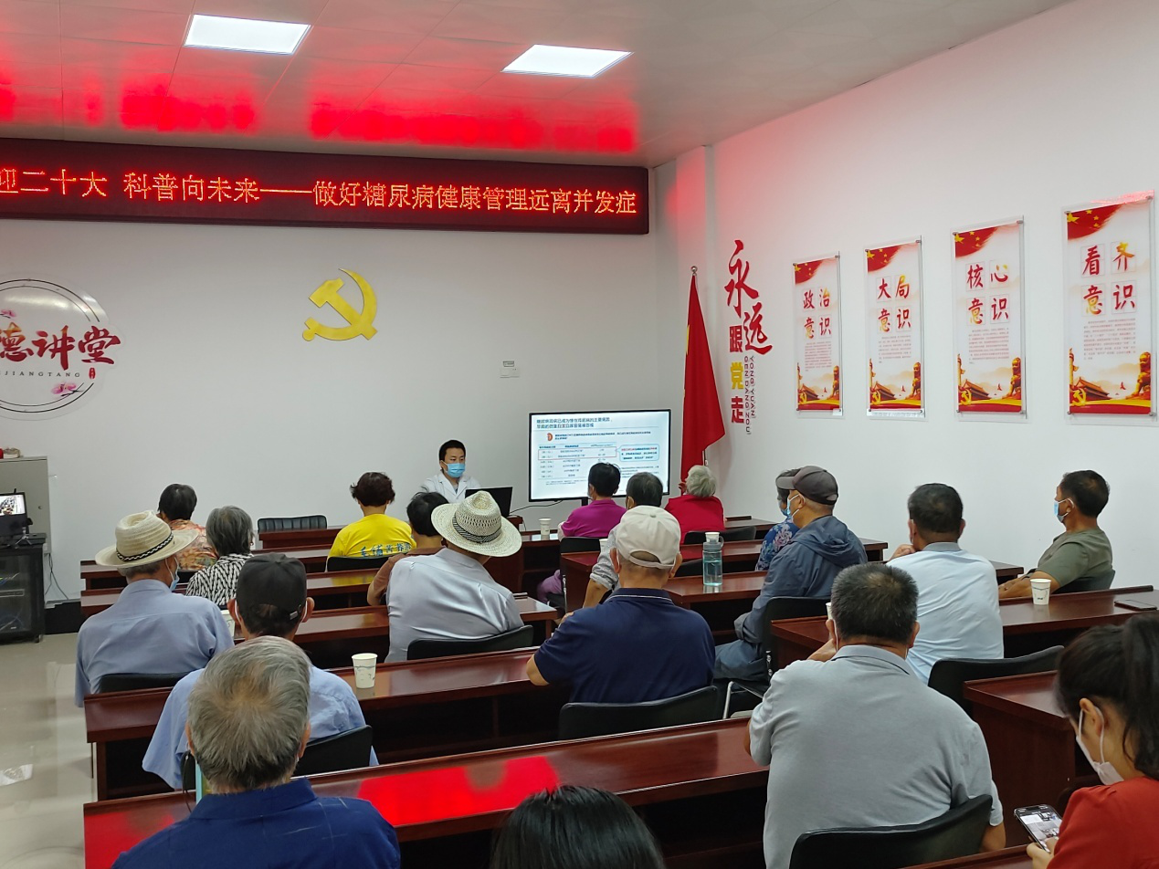 活动上,冯主任讲解糖尿病急慢性并发症的危害及如何早期进行预防并发症的发生;陈芝护士长重点讲解如何健康饮食及糖尿病足病的预防。医务人员为前来参加科普教育的群众进行测血压、测血糖各50人次,糖化血红蛋白监测20人次,通过监测血糖和血压告知他们血糖、血压监测的重要性,让他们了解监测血糖、血压是糖尿病治疗效果的重要保障,使老百姓了解各项监测的重要性及意义所在。同时,还发放糖尿病的健康宣传资料50余份。护理人员针对有糖尿病的患者在饮食控制、规律服药、监测血糖和体育锻炼以及并发症的预防,给予了个体化的健康指导,向大家科普糖尿病是可以预防和控制的,教育指导改善饮食结构,控制体重,增强体质,提高生活质量,远离糖尿病及并发症。