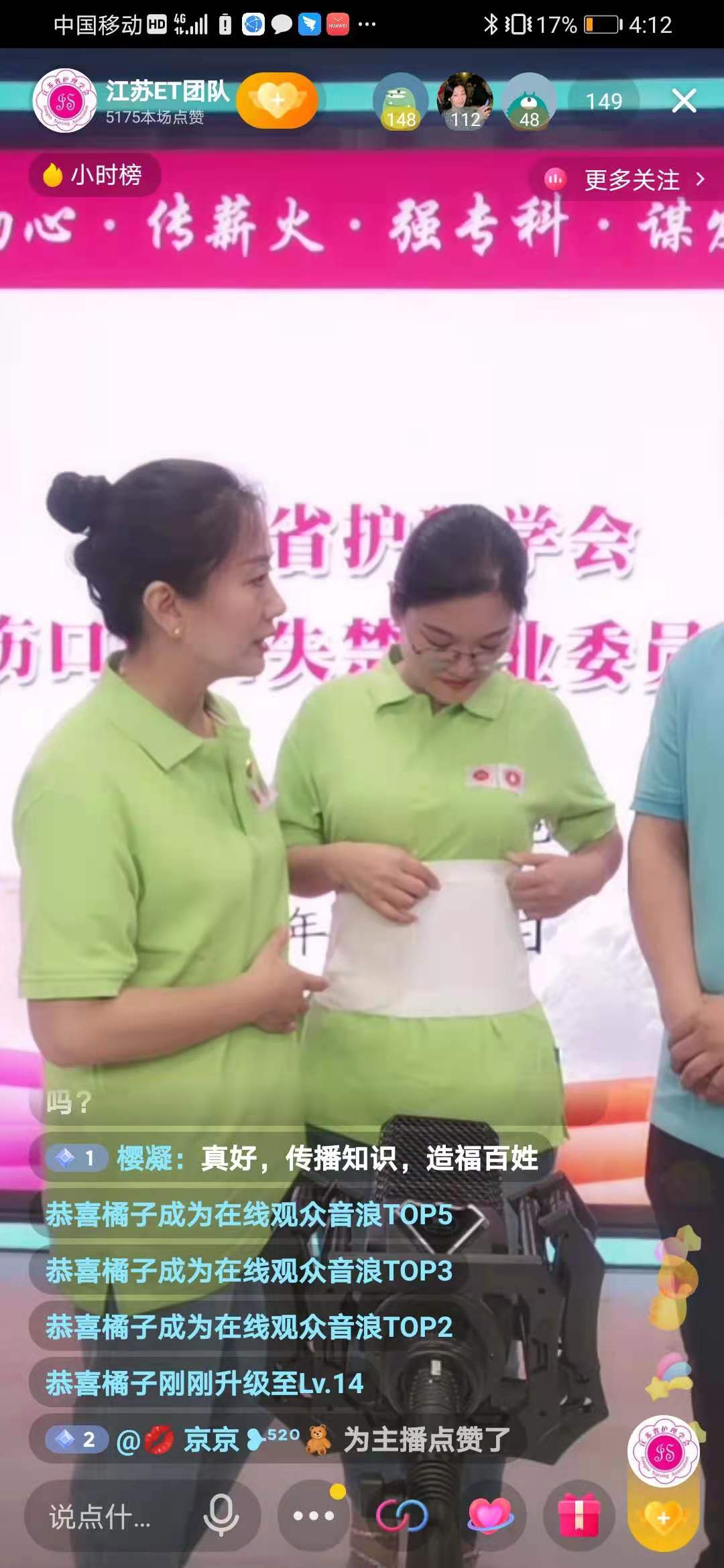短短一个小时直播时间,医生、ET姐妹们轮番上阵,利用老百姓喜闻乐见的形式展示了4个科普段落,近200人观看直播,获得12000余点赞,让大众感受到了科普的魅力。连云港伤口造口失禁专委会一直致力于科普知识的推广、传播,广泛利用“5.12护士节”等开展科普宣传周等活动,深受百姓喜爱,也树立了独特的品牌形象;利用抖音这一高效平台,开展科普直播,是专委会惠民的又一与时俱进新举措,此举也为科普开拓更多的可能,将科学注入大众生活的方方面面,为“健康中国”添砖加瓦。