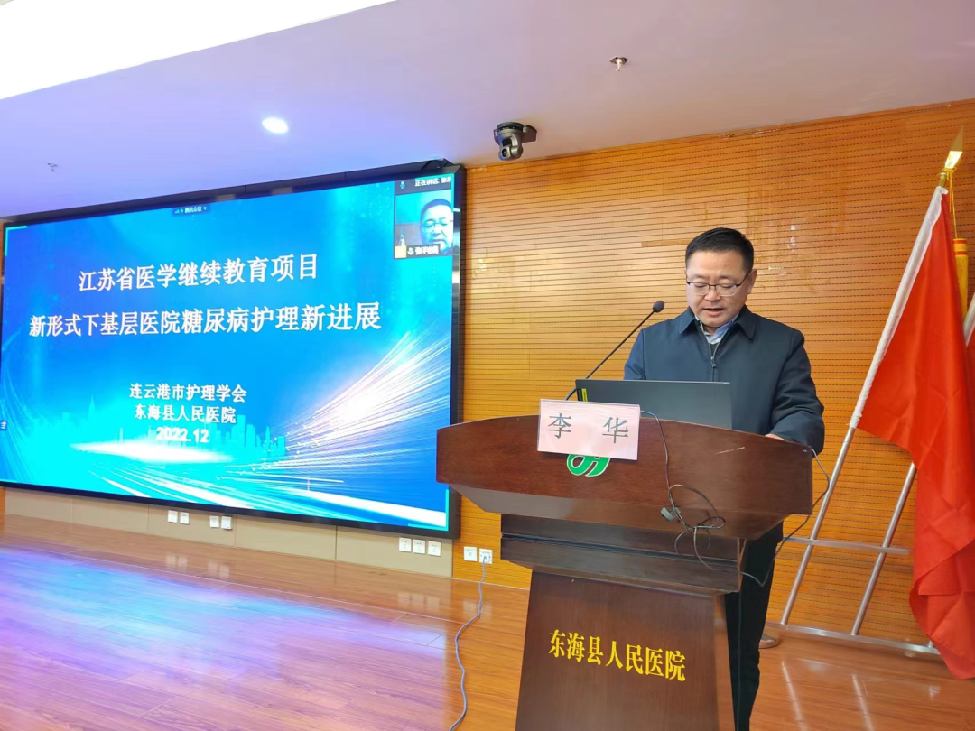 开幕式上,东海县人民医院李华副院长进行致辞,他指出,目前糖尿病呈高发病趋势,东海县人民医院内分泌科在糖尿病防治及健康科普方面开展了形式多样的活动,取得了一定的成效。希望通过此次学习班相互交流、学以致用,探索新形势下糖尿病护理管理新模式,适应当前疫情防控常态化时期糖尿病护理的新进展和新形势,让更多的患者受益。此次培训班邀请到南京市妇幼保健院营养科主任戴永梅讲授《妊娠期高血糖营养管理》,连云港市医学会科学技术普及委员会副主委、连云港市妇幼保健院健康教育处处长卜玉洁讲授《全媒体时代下健康科普如何做》等多项专科内容。