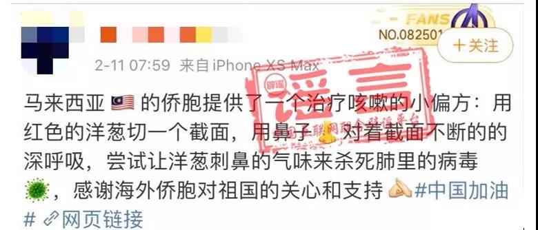 近日,一则“马来西亚华侨无意中发现的生活偏方,切开生洋葱,吸气几十下,洋葱的刺鼻辣味有杀菌作用,可预防新型冠状病毒肺炎……”的消息在网上流传开来。