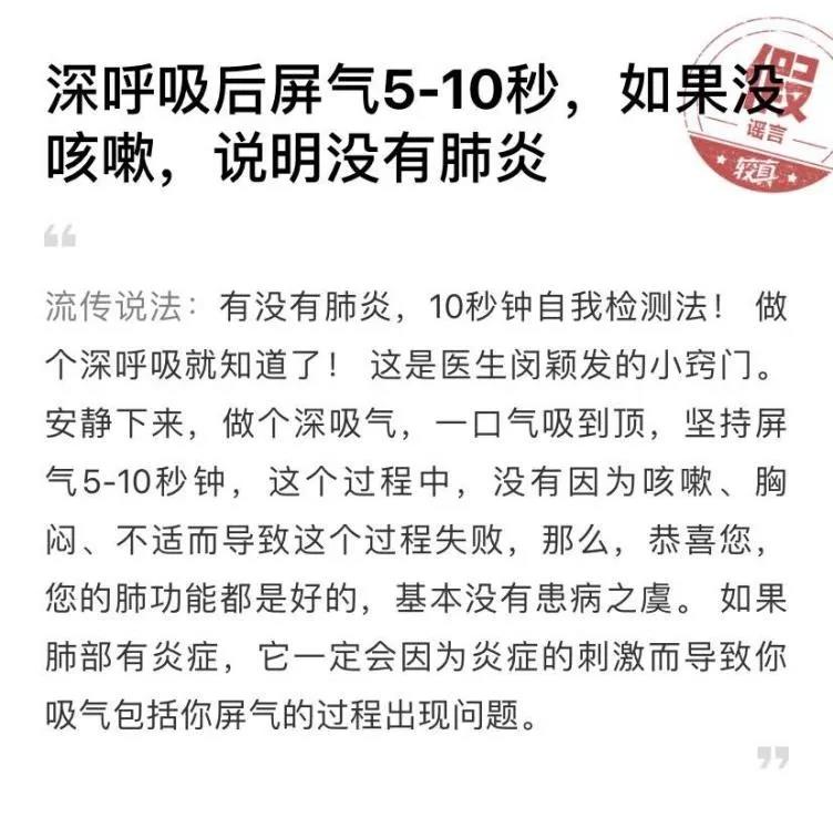 谣言十:深呼吸再憋气十秒可测是否有肺炎吸再憋气十秒可测是否有肺炎